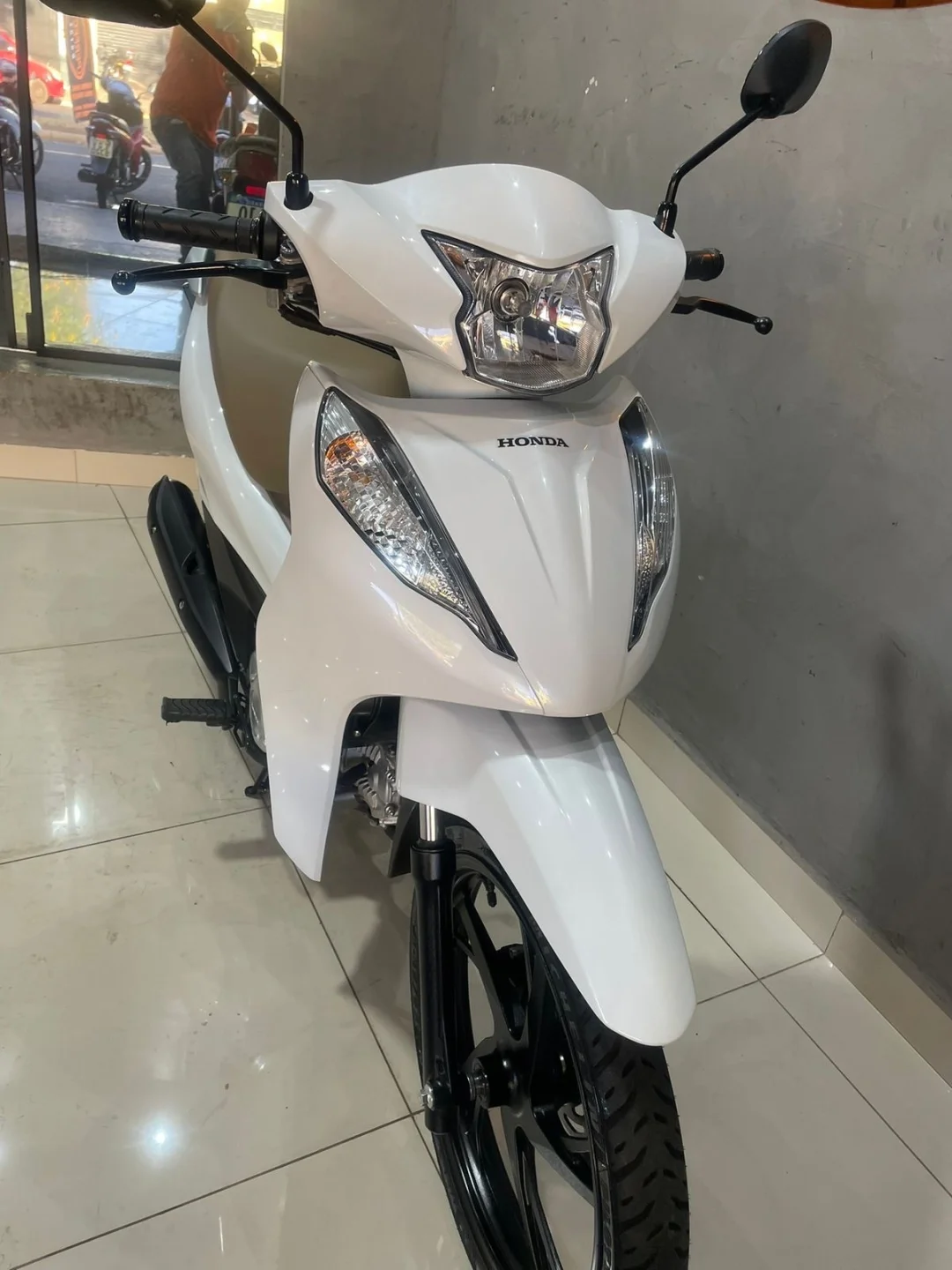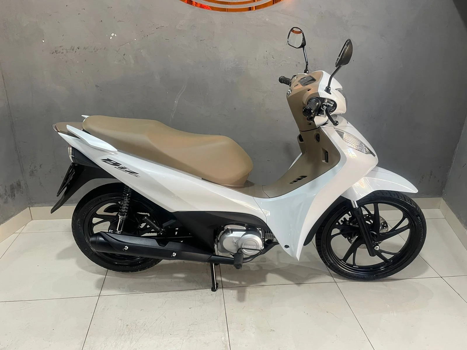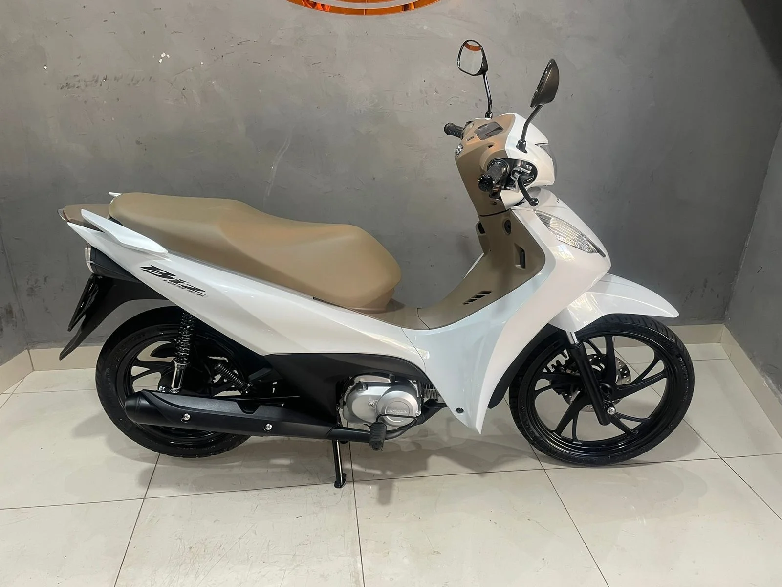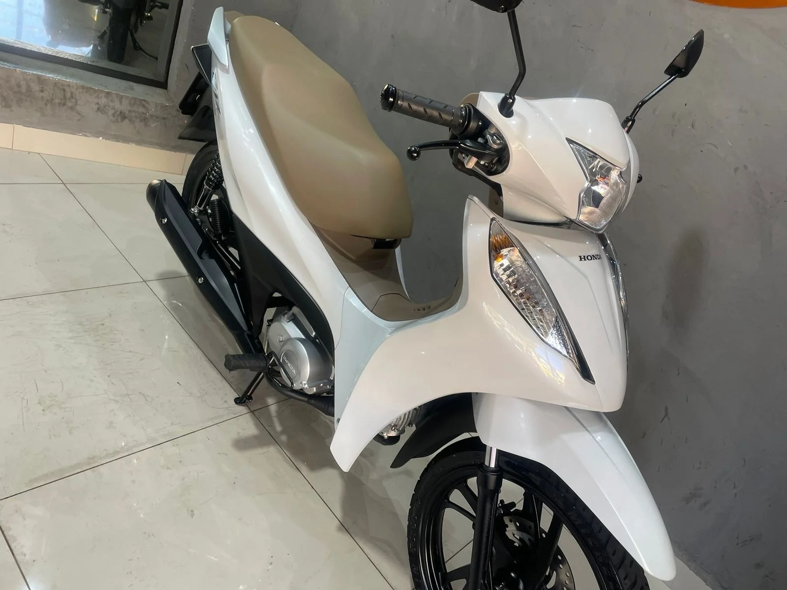 Branquinha com banco caramelo, linda e super confortável — aquela moto perfeita pra quem quer economia, praticidade e estilo no dia a dia.